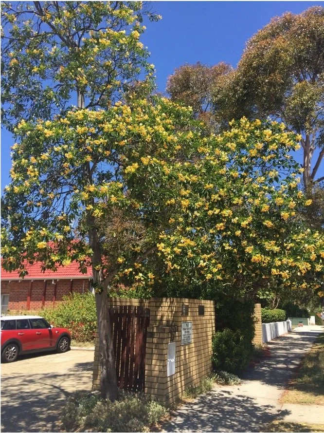 A Queensland rainforest native, this beautiful tree has deep green glossy foliage and loads of fragrant flowers during Spring and Summer. Cream coloured flowers gradually darken to golden yellow before dropping and attract native birds and bees. It’s excellent for a full sun position and a great choice if a more dappled shade is required or when you want to screen a view without completely blocking it.