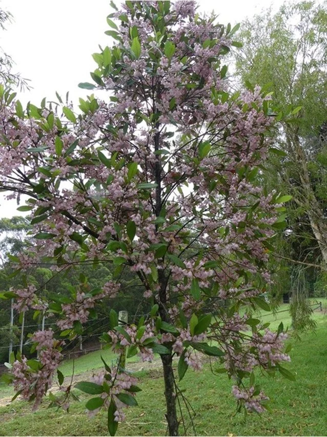 This is another native Queensland rainforest tree. The wonderful glossy evergreen foliage and large clusters of wildlife-attracting pink flowers make it a great addition to a native garden. These are a tall tree to around 8m, with an open branching habit and a rounded canopy.